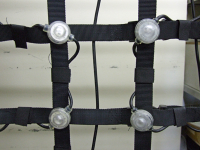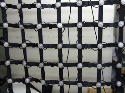 カラーウェブは、1㎡の柔軟な網状ベルト地に125mm間隔で個々にアドレス可能なLED(RGB)が搭載されています。